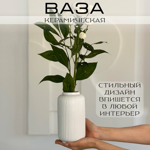 "Ваза для цветов AM Home Decor" - керамическая белая ваза для...