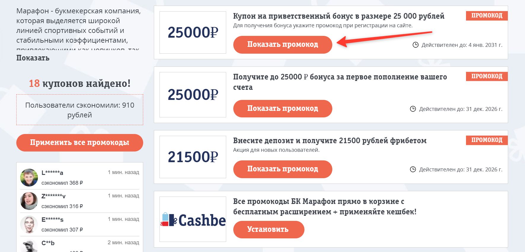 Все промокоды БК Марафон прямо в корзине с бесплатным расширением + применяйте кешбек!